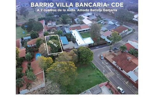 ¡Excelente oportunidad en Ciudad del Este! Presentamos este terreno en venta ubicado en el prestigioso Barrio Villa Bancaria, Ciudad del Este, Alto Paraná, Paraguay. Con un total de 459 metros cuadrados de puro potencial, esta propiedad se encuentra en una categoría residencial, ideal para quienes buscan invertir en un área urbana de creciente demanda. Este terreno se perfila como la elección perfecta para la construcción de un moderno hogar, con amplias opciones para incluir un jardín acogedor y estacionamiento para hasta tres vehículos, facilitando la comodidad de su futuro hogar. Además, la ubicación es ideal para los amantes de las mascotas, permitiéndoles disfrutar del cálido clima y del estilo de vida urbano que ofrece la zona. Destaca por su proximidad a servicios de transporte público, lo que permite un fácil acceso a las comodidades de la ciudad, haciendo de este terreno una inversión inteligente para quienes buscan la vida en la ciudad sin sacrificar la tranquilidad de un vecindario residencial. Diseñado específicamente para el uso residencial, este terreno representa una gran ocasión para construir la casa de tus sueños, con espacio suficiente para adaptarse a tus necesidades. No deje pasar esta increíble oportunidad de inversión en una de las áreas más prometedoras de Ciudad del Este. ¡Contáctenos hoy mismo para más detalles!