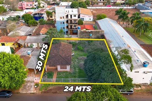 Oportunidad Única en Ciudad Nueva, CDE Dos lotes contiguos con gran potencial comercial 24 m de frente x 30 m de fondo se juntan para formar un espacio de ~720 m² en una zona de alta demanda en el barrio Ciudad Nueva, Ciudad del Este. Aunque tienen una construcción antigua en estado de abandono, el verdadero valor está en la ubicación estratégica y el tamaño: imaginación, vos ponés el negocio, esta tierra pone la proyección. *Aspectos clave: -Frente amplio para visibilidad excepcional y fácil acceso. -Zona transitada: ideal para comercios, oficinas, emprendimientos mixtos. -Barrio emergente con constante desarrollo urbano y buena conectividad (ruta PY-02, zonas universitarias, emprendimientos recientes).