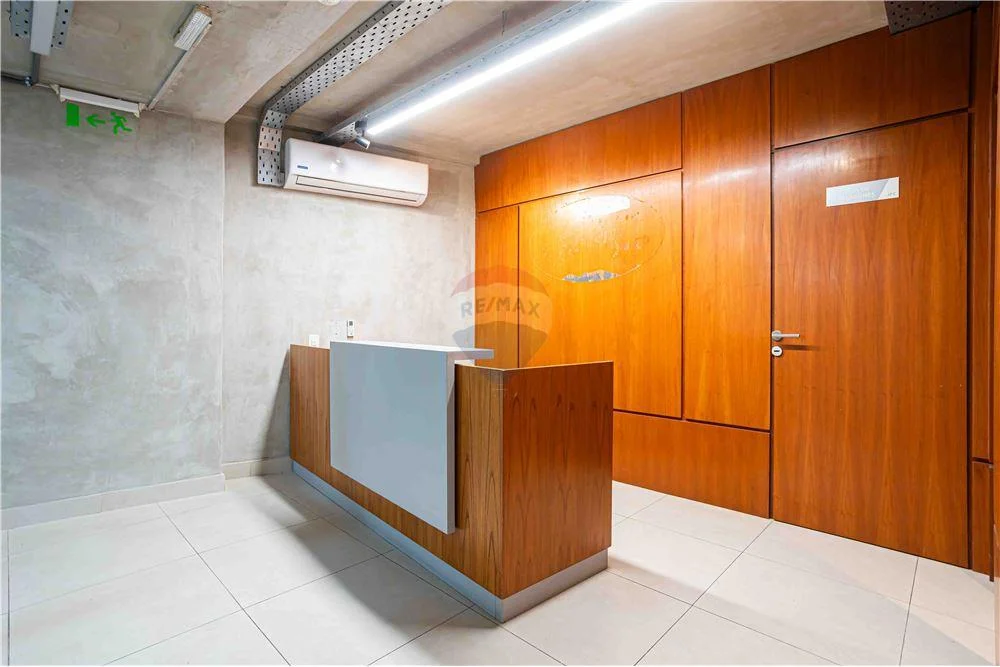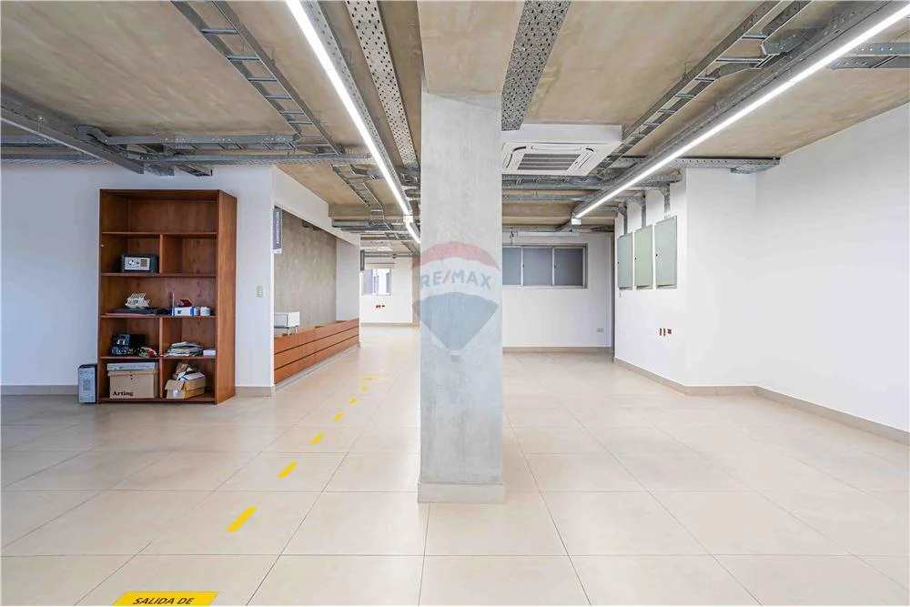 Esta gran oficina tiene un estilo vanguardista, paredes y techo estilo cementicio, con caños a la vista, muy bien logrado el espacio por el arquitecto a cargo.