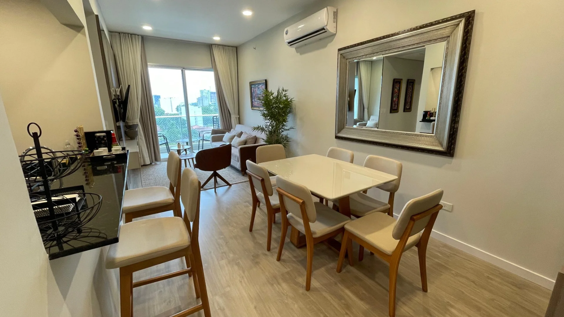 Te presento este moderno apartamento en alquiler, ubicado sobre la Avenida mas solicitada en este momento Molas Lopez . Este departamento está diseñado para ofrecer un estilo de vida contemporáneo y funcional, ideal para quienes buscan comodidad y un entorno práctico. Con 2 habitaciones y 2 baños, esta unidad se presenta como una opción atractiva en su tipo. El departamento dispone de una luminosa sala de estar integrada que se conecta fluidamente con un balcón, permitiendo disfrutar de vistas urbanas privilegiadas, eje coportarivo. La cocina tipo americana y el comedor integrados, crean un ambiente cálido y acogedor. Todos los ambientes cuentan con aire acondicionado para garantizar el máximo confort, y una barra estilo americano añade un toque de modernidad. El dormitorio principal en suite te ofrece una hermosa vista panoramica. El dormitorio secundario ideal para maximizar el espacio y adaptarse a diversas necesidades. Aire acondicionado en todos los ambientes, ambientes finamente decorados, hacen una excelente opcion para una vida de confort y funcionalidad diaria. Precio de alquiler: U$S 1.200 IVA incluido, expensas e internet.