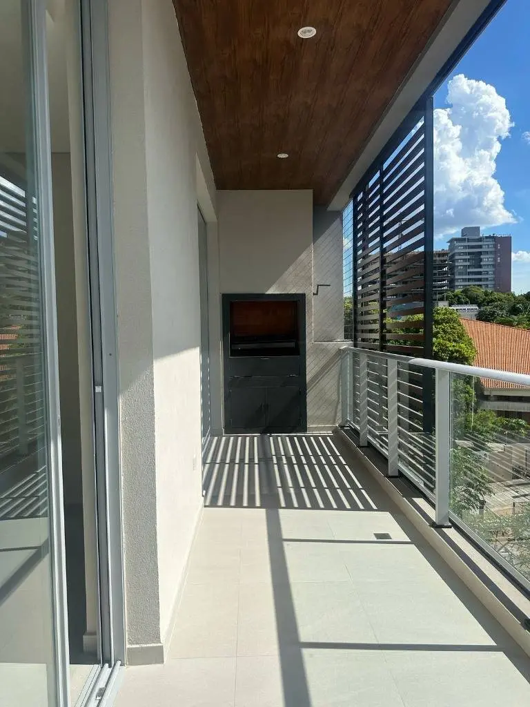 - Balcón con parrilla y parasoles móviles