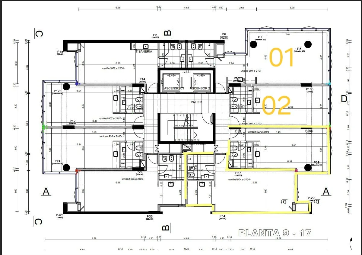 2 Baños de uso común en el piso