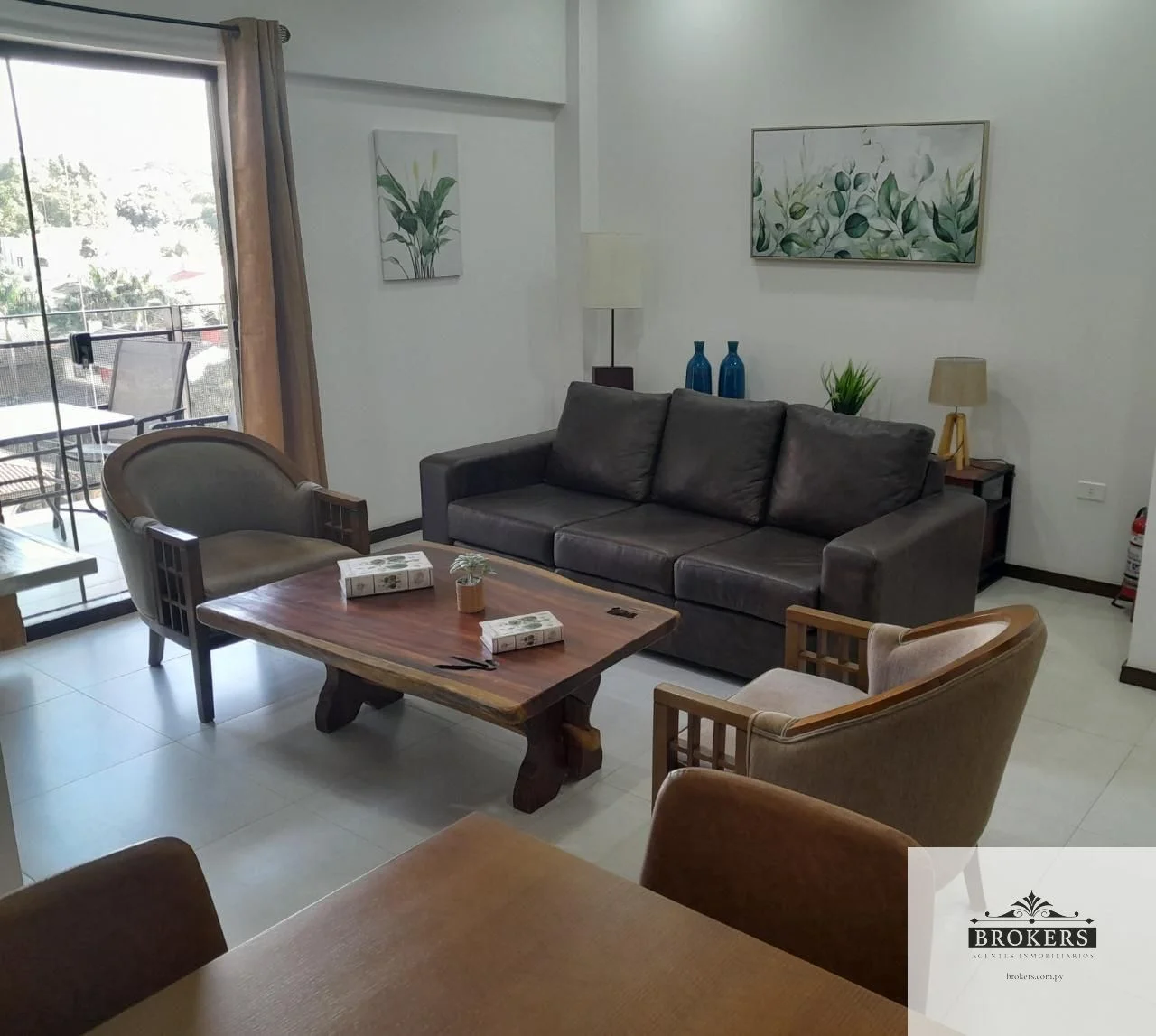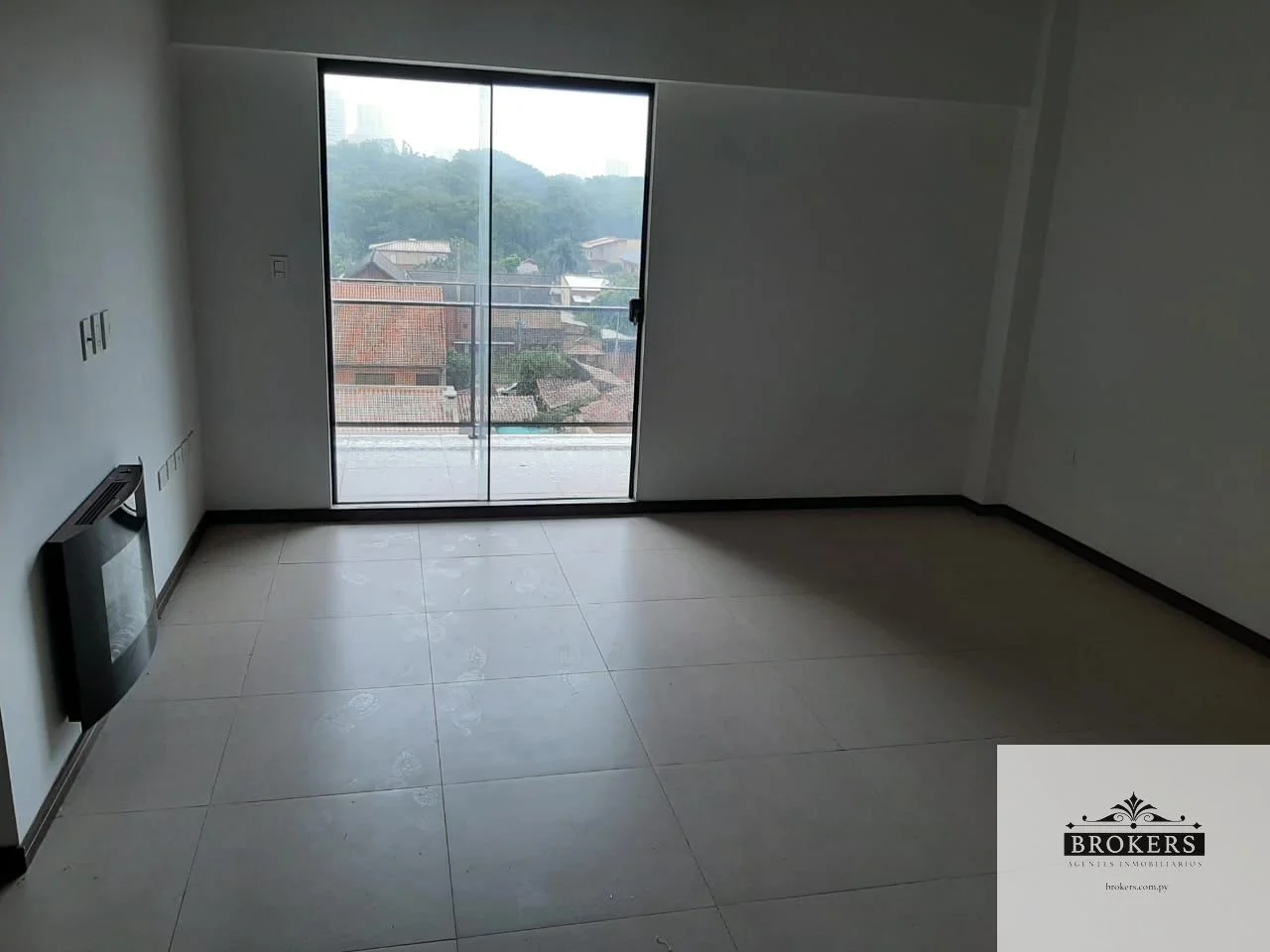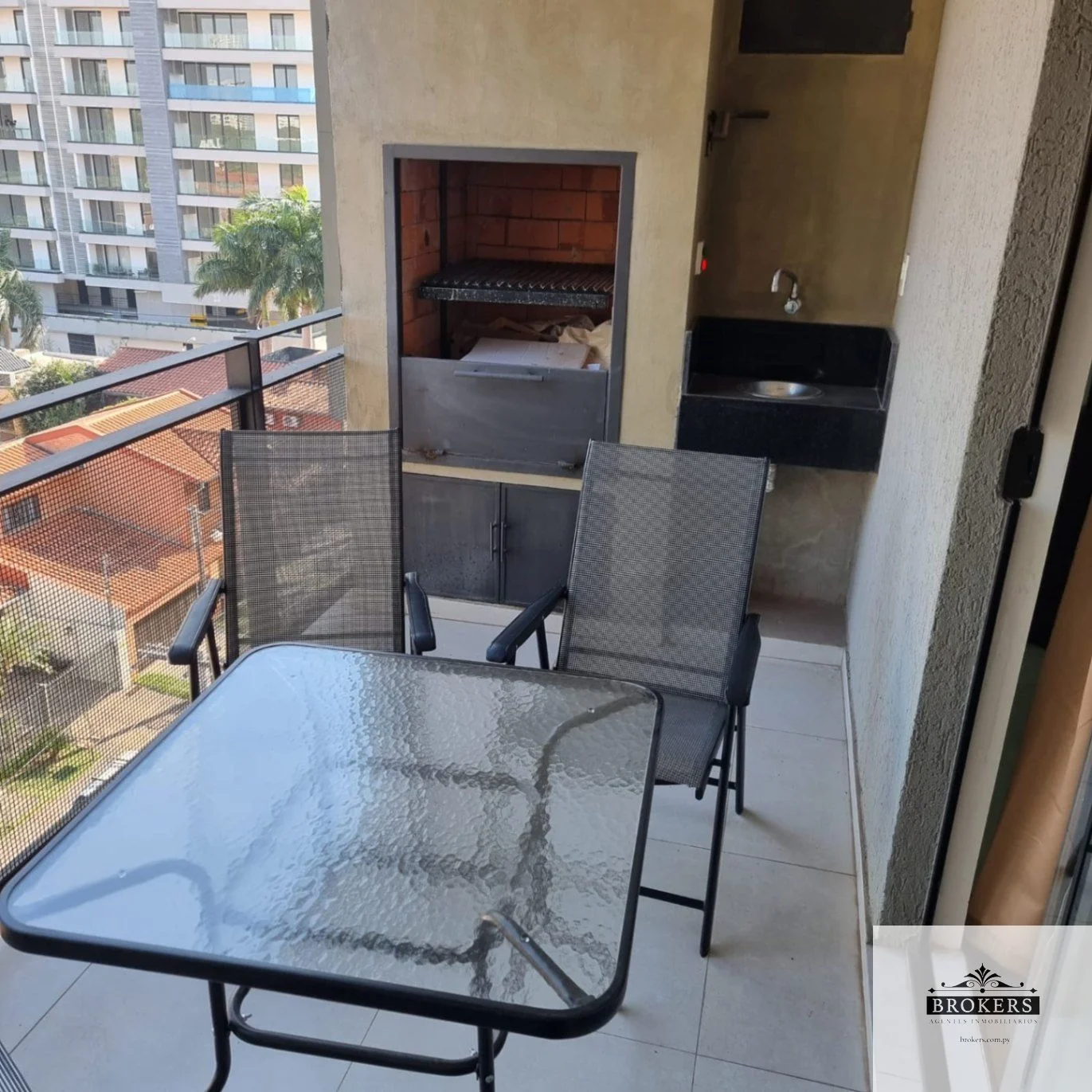 Sala comedor con chimenea eléctrica, balcón con parrilla,
