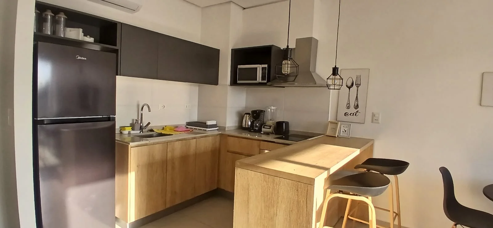 - Cocina amoblada (anafe, horno empotrado, extractor)
