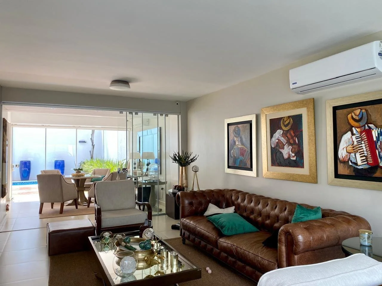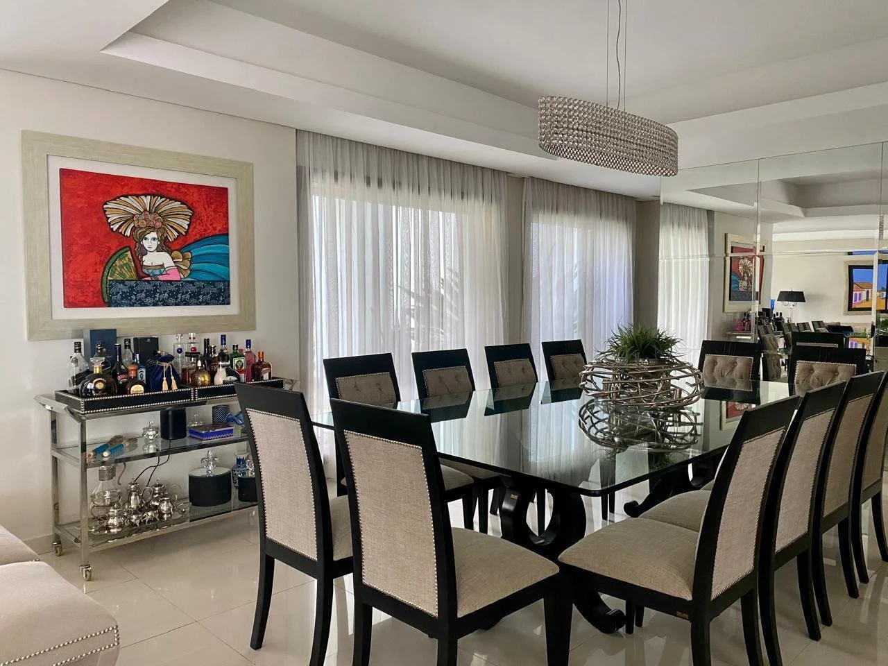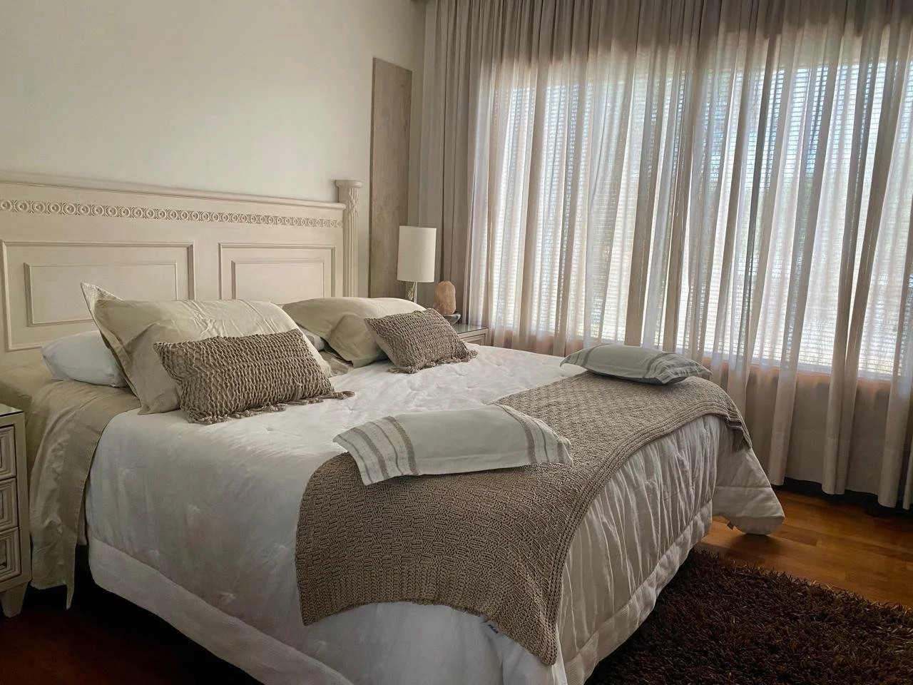 *Planta Alta:* -1 master suite (área de descanso y living)amplios ventanales con vistas al frente y al fondo de la casa, con gran vestidor amoblado por Dell Anno, baño con doble bacha de mármol italiano, ducha y tina. -Terraza -2 amplios dormitorios en suite. Suite 1: Mesada y tina de mármol, ducha. Suite 2: con balcón y vista a la piscina, baño con mesada de granito y ducha.-1 habitación para gimnasio o escritorio -Hall de distribución -Baulera-Depósito (opcional para torre de lavado con todas las conexiones)