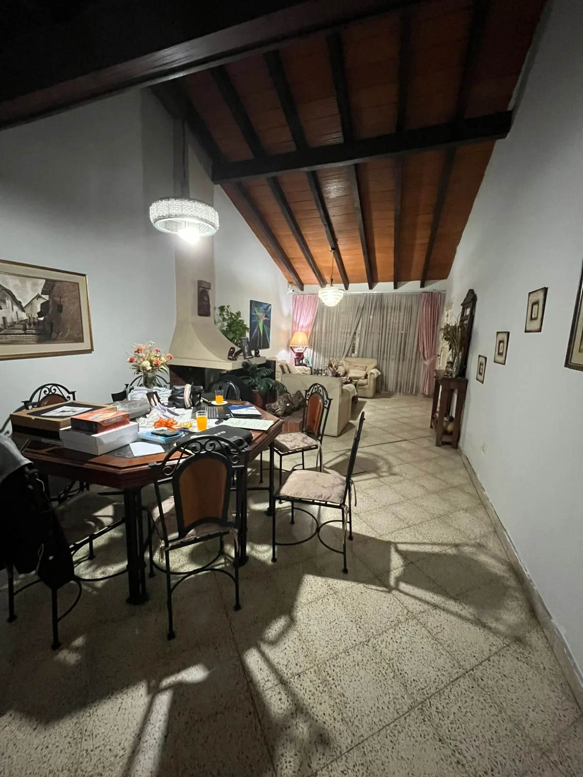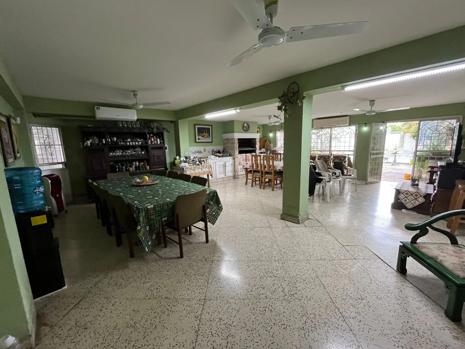 Amplia sala,comedor con chimenea.