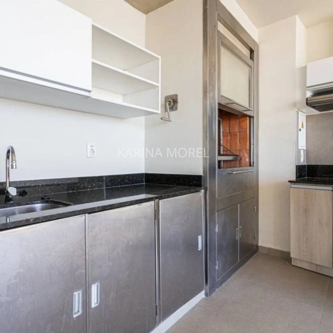 Cocina integrada con muebles, anafe y extractor