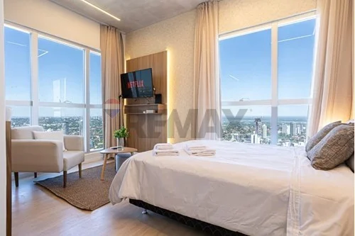 ALQUILO LOFT AMOBLADO PETRA TOWER Alquilo DEPARTAMENTO LOFT EN PETRA TOWER Viví la experiencia de altura en el edificio más emblemático de Asunción. LOFT amoblado Piso 33D Cocina semiintegrada de diseño moderno Living comedor 1 Baño Aires acondicionado y placares empotrados Superficie: 31m2 Restaurante kessel en el 27 Amenities y servicios del edificio Piscina panorámica en piso 43 y 27 Solárium con vistas a toda la ciudad Gimnasio totalmente equipado Quinchos climatizados y salones de eventos Lobby con seguridad 24 hs https://maps.app.goo.gl/zBXB5ZRhJLeRjbK6A?g_st=ipc *Precio de Alquiler: USD 740
