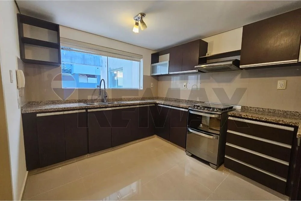 La cocina es independiente, con buen espacio de guardado y circulación, conectada al área de servicio. Además, incorpora un ambiente de estudio ideal para home office o uso multifuncional. El área social es amplia, con excelente potencial para living y comedor, destacándose por su luminosidad y ventilación.