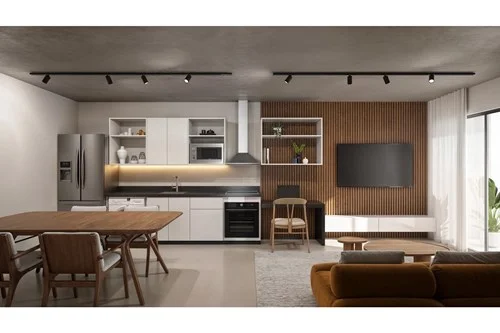 ✔️ Sala, cocina y comedor integrados