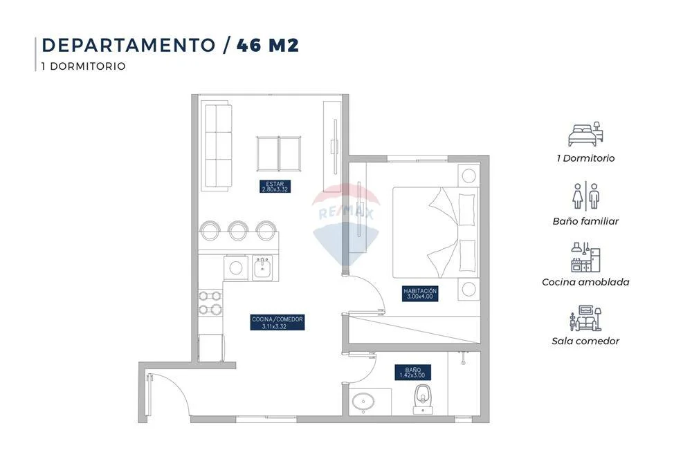 USD 54,000 1 dormitorio