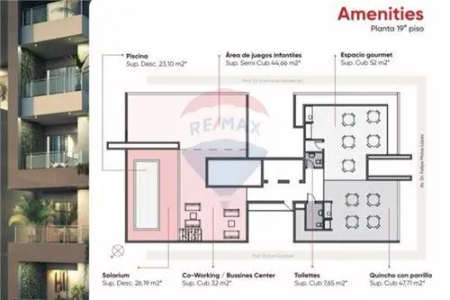 Contará con exclusivos amenities como piscina y solárium, quincho de uso común con parrilla, área de coworking y juegos para niños.