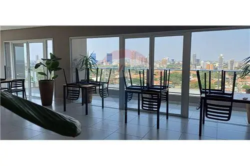 UNA AMPLIA PISCINA SOBRE ELEVADA CON UNA HERMOSA VISTA EN 306º DE LA CIUDAD DE ASUNCION CON VISTAS VERDES DE LA MISMA.