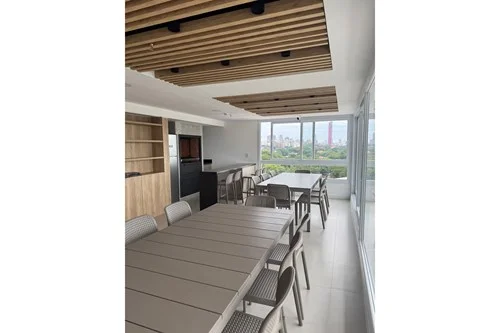 Edificio residencial de 9 niveles en zona estratégica con alta demanda. Ubicación: Barrio Jara cercano a colegios, universidades, supermercados, bancos y servicios. Departamento de 2 dormitorios, con placares - 1 dormitorio en suite - 1 baño familiar social - Área interior + balcón: 76.7 mts2. - Orientación: Frente - Piso 7 - Incluye 1 cochera techada. En la unidad incluyen: - Cocina equipada, horno, anafe, campana - muebles completos, Aires acondicionados, - iluminación, porcelanato, - balcón con parrilla, -lavadero oculto, termocalefón. Amenities: Piscina, gimnasio climatizado, quincho, sala de reuniones, terraza con vistas. Diferencial: Diseño funcional, excelente luminosidad y distribución. Ideal vivienda o inversión. Cta. Cte. Ctral. en trámite.