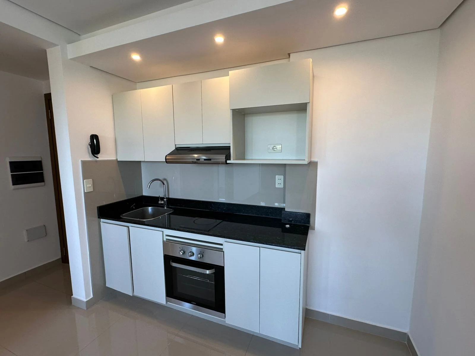 Cocina integrada equipada con placares, horno, anafe y extractor.