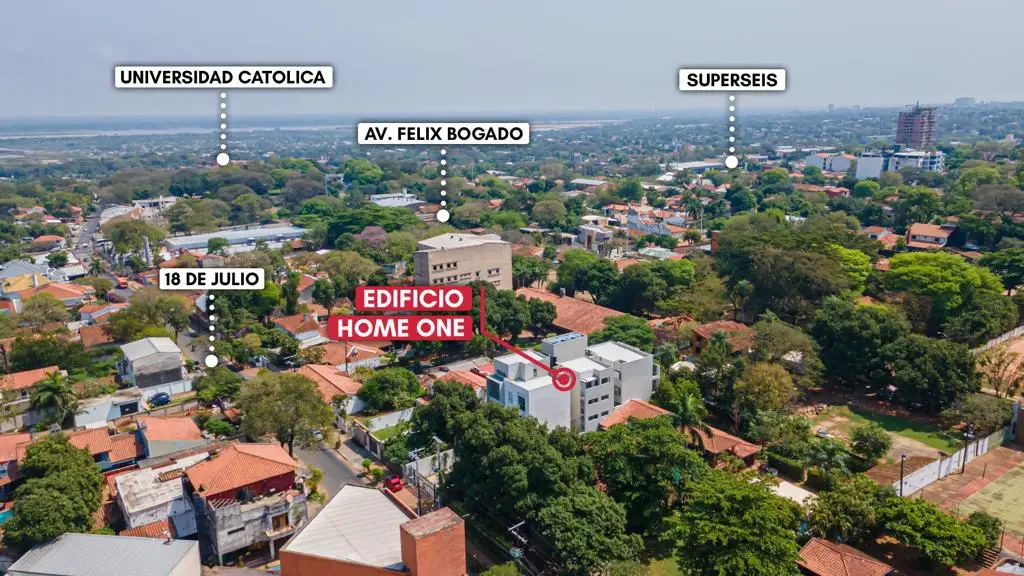El edificio, inaugurado en 2020, está situado sobre la calle 18 de Julio casi la Av. Gral. Santos; a escasos metros del Colegio Alpha College de la universidad Americana; a pasos del campus de la Universidad Católica, de la Av. Félix Bogado y del nuevo Hospital del IPS 12 de Junio. A tan solo 15 minutos de Villa Morra y 10 minutos del centro. Rodeado de diversos comercios, locales gastronómicos, supermercados.