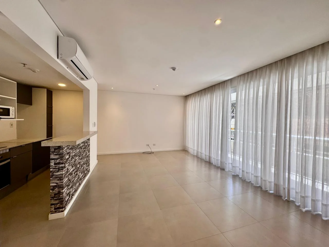 Cocina integrada con barra a la sala- comedor