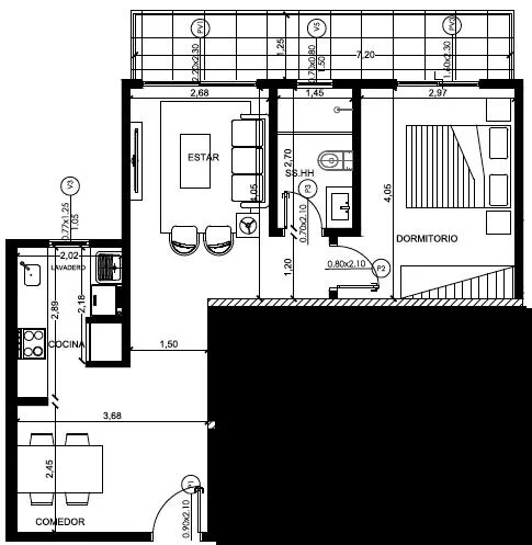 El departamento cuenta con: Comedor Cocina con ventilación Natural. Living con vistas Cómodo Balcón. Baño con ventilación natural. Dormitorio con salida al balcón.