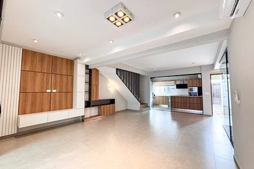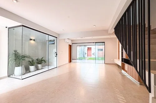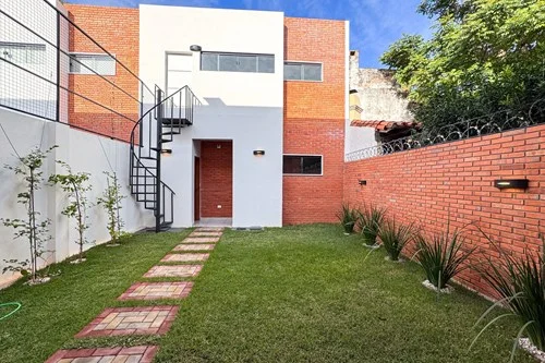 En venta casa pareada - zona Shopping Mariscal Lopez. Terreno de 180m2 Const. 208 m2 PB - Garage para 2 vehículos - Amplia sala de estar con tragaluz - Baño social - Cocina totalmente equipada semi independiente - Quincho climatizado con parrilla inox - Patio empastado - Área de servicio: habitación, baño, lavadero, deposito. PA - 1 master suite con walking closet y blanqueria - 2 suites secundarias con placards - sala de estar intima Obs. Todos los ambientes están climatizados incluyendo el area de servicio y amoblados con muebles empotrados como rack de tv, espacios de almacenamientos multiples. Motobomba con reservorio de agua, circuito cerrado y cerco eléctrico. La cocina incluye todos los electrodomésticos: la vajillas, heladera de 2 puertas, horno, anafe,, extractor, microondas. Ubicado: Atrás mismo del Colegio Campo Alto.
