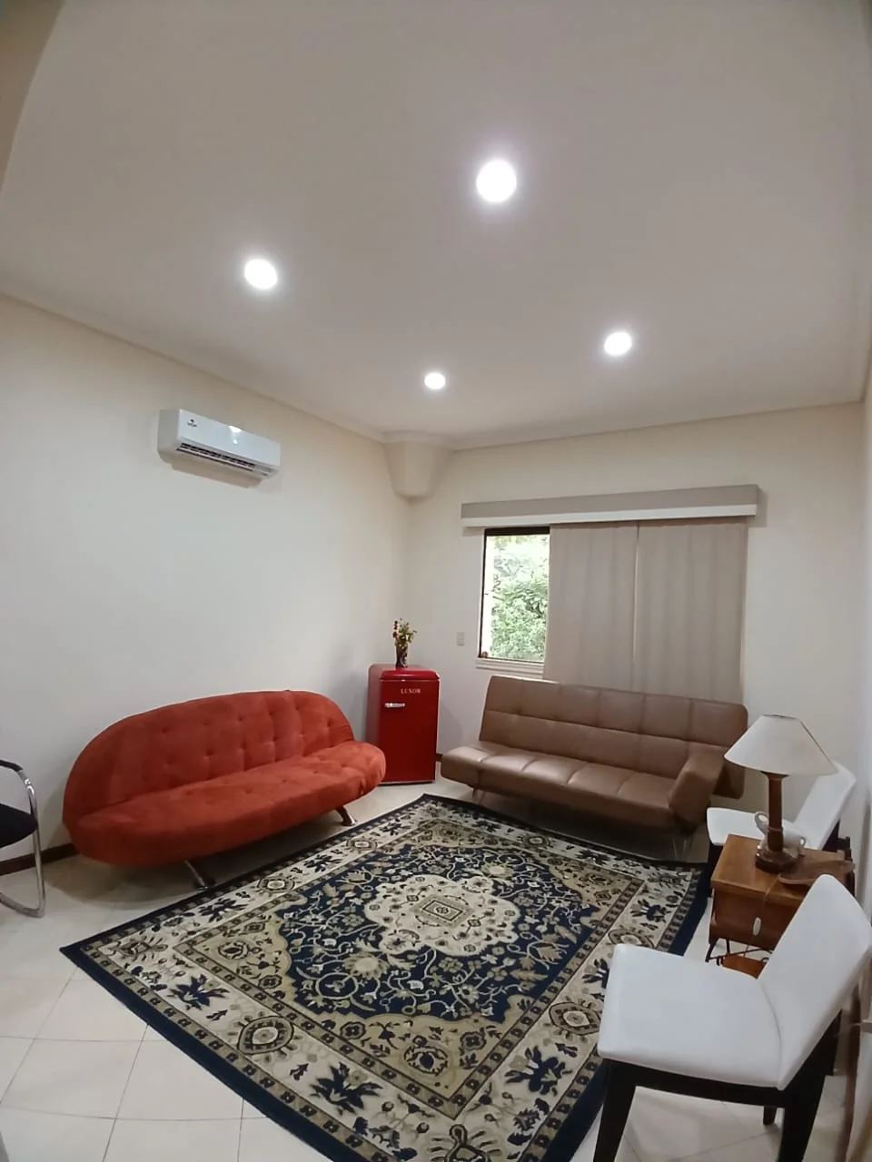 ▫️Sala con chimenea, buena distribución, piso parquet, muebles, tv.