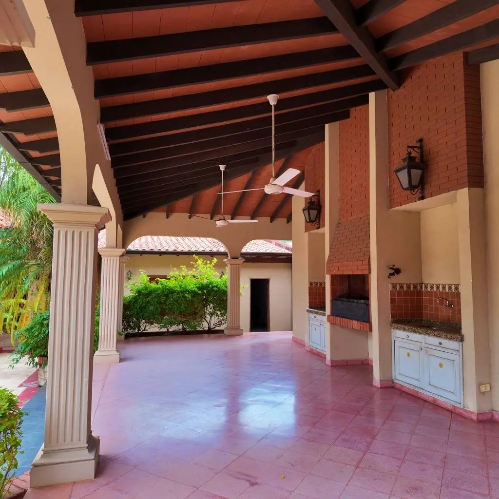 Piscina amplia en el patio, con quincho, baños sexados y pequeño depósito auxiliar..