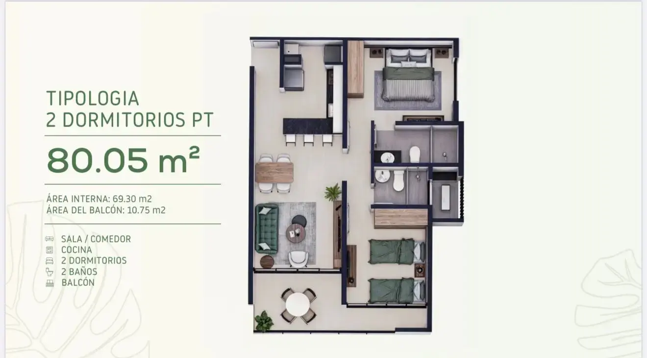 * 2 Dormitorios (una suite)