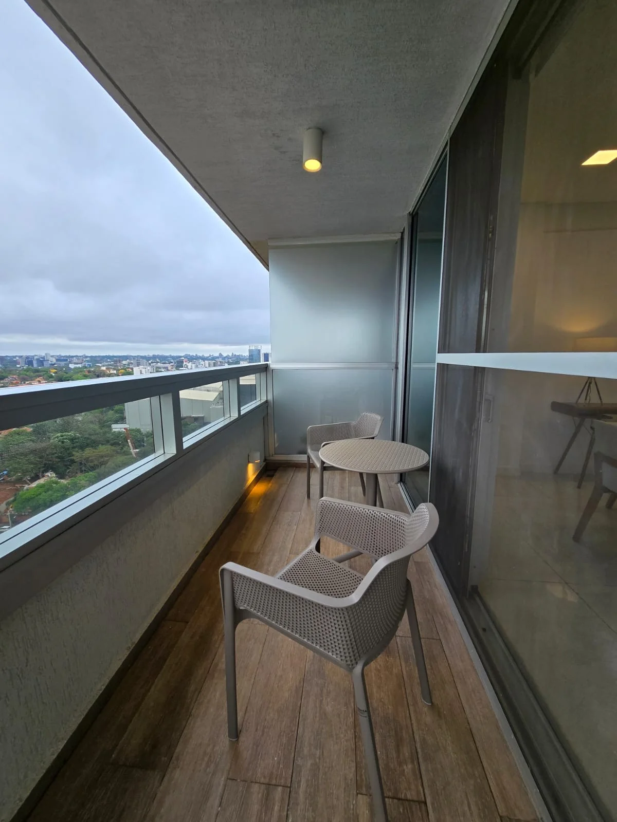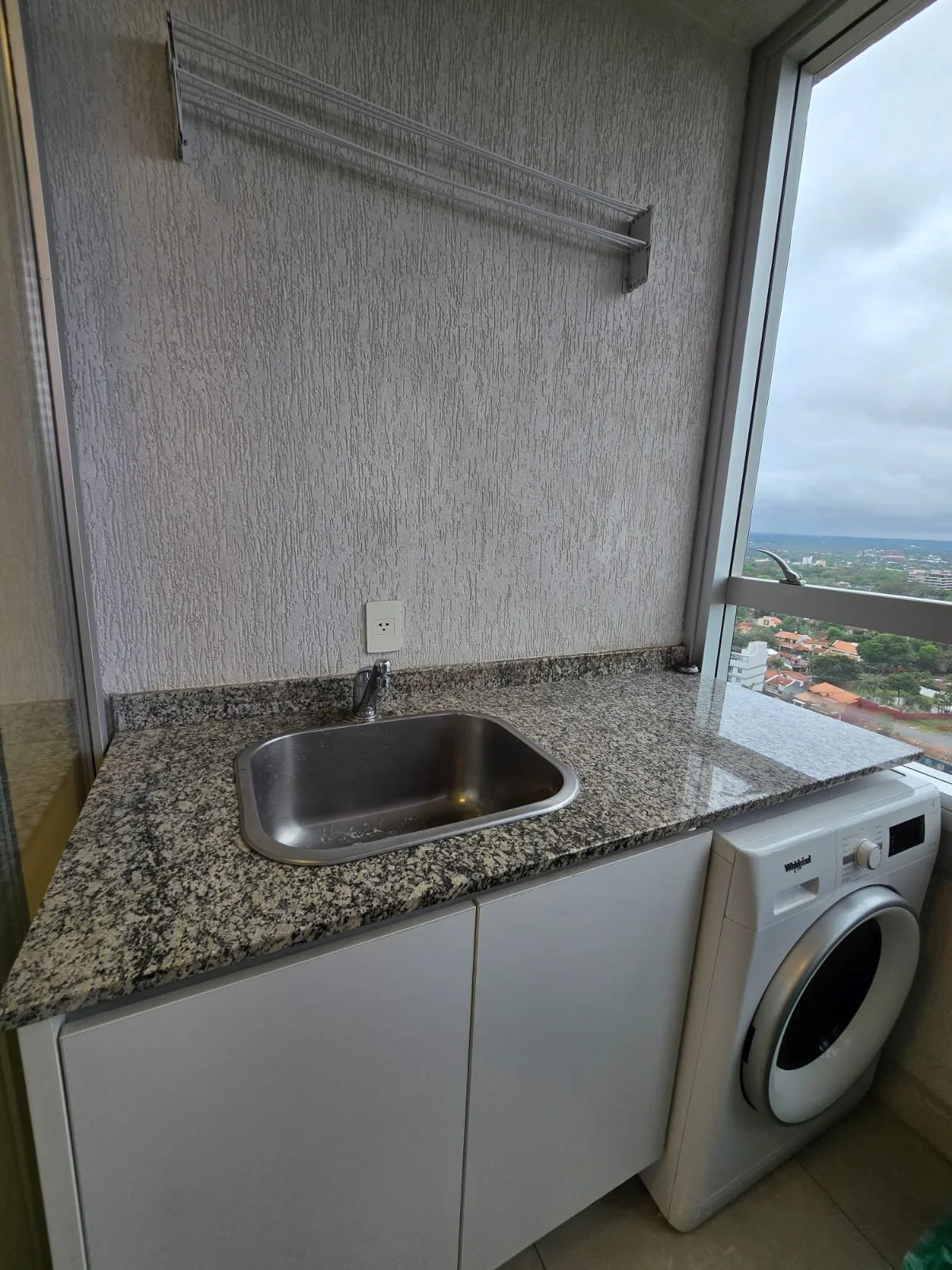 Ubicado en piso alto, cuenta con un confortable living comedor, baño para visita y con balcon con hermosa vista. La cocina se encuentra full equipada con electrodomesticos y vajillas. Ademas cuenta con lavadero independiente.
