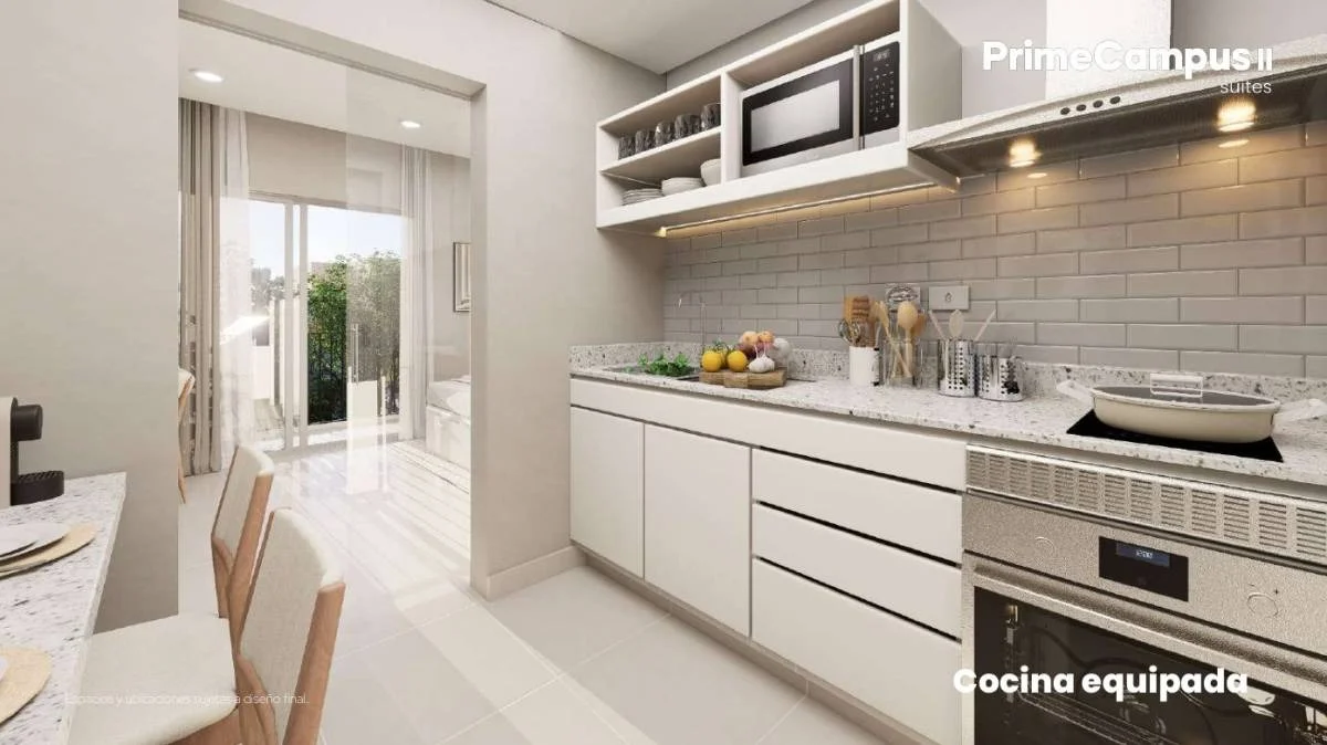 Unidades funcionales: cocina equipada, balcón y espacios versátiles para descanso, trabajo o estudio