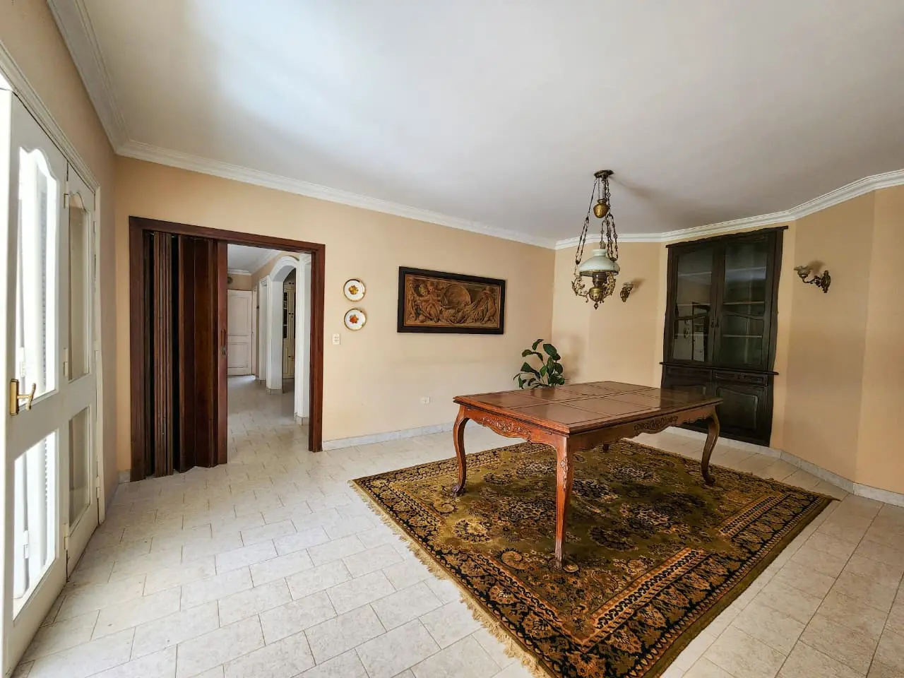 La residencia dispone de una suite principal, dos dormitorios adicionales y un baño compartido, ofreciendo privacidad y confort para toda la familia. La cochera cubierta con capacidad para hasta tres vehículos garantiza seguridad y comodidad.