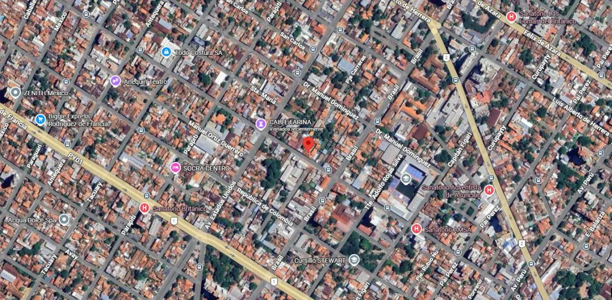 Ubicado sobre la calle Teniente José María Fariña Nro. 1063 entre la calle Brasil y Avenida Estados Unidos,a 200 metros de la Avenida Doctor Gaspar Rodriquez de Francia, a pasos de la Avda. Estados Unidos. Barrio San Roque.
