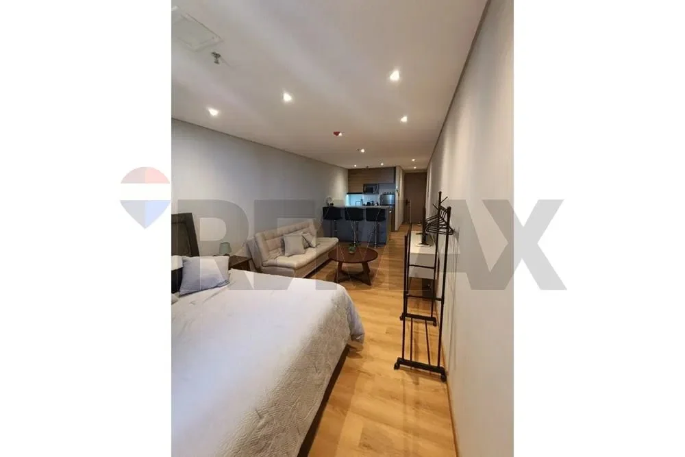Ubicado en un área residencial de alto prestigio, este departamento ofrece 40 metros cuadrados de espacio habitable, perfectamente distribuidos, La cocina amoblada y equipa te soluciona la vida, el baño moderno cuenta con manpara y espejo inteligente.