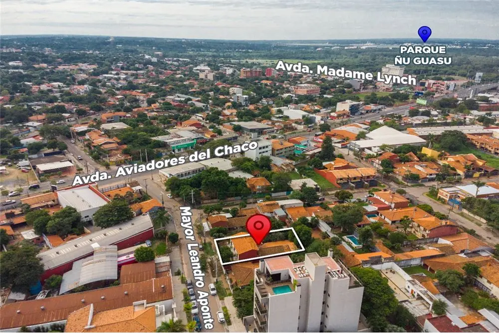 Ubicada sobre la calle asfaltada Mayor Leandro Aponte a pasos del Colegio Goethe y la Quinta Ykua Satí, a tan solo 1 cuadra de la Avda. Aviadores del Chaco y a escasos minutos de los puntos más importantes de la Capital como el Eje Corporativo, Paseo La Galería, Shopping del Sol.