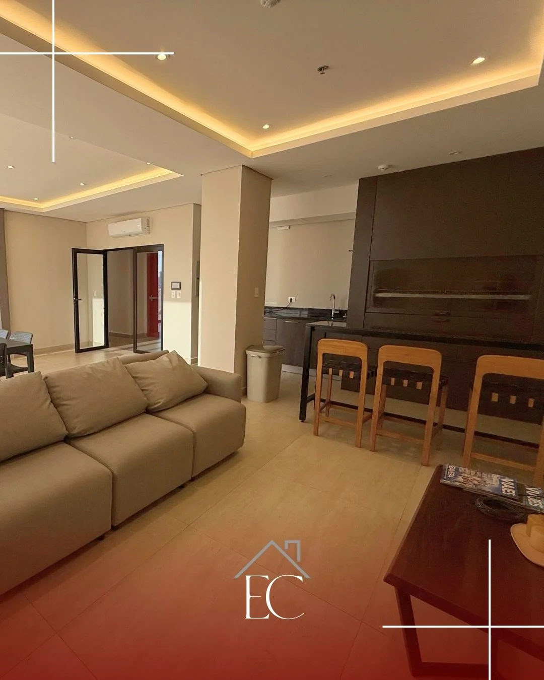 Quincho y sala de tv amoblado que se integra con un amplio balcón