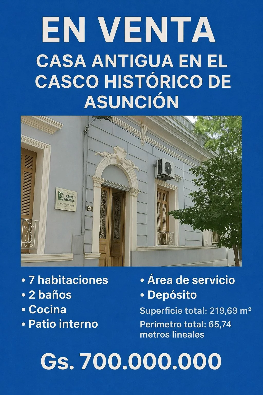 EN VENTA – CASA ANTIGUA EN EL CASCO HISTÓRICO DE ASUNCIÓN