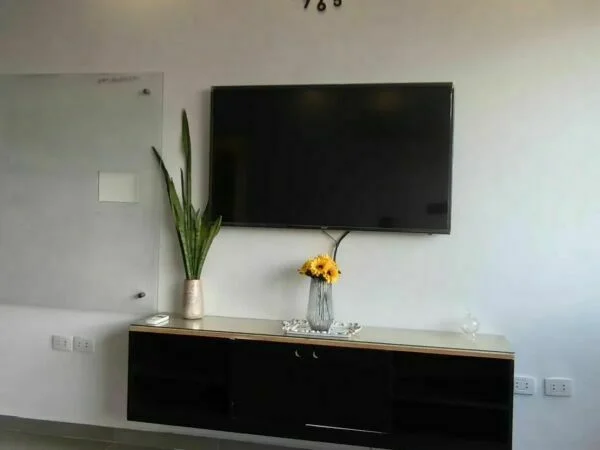 Sala, comedor (sofá, tv, sillas, mesa)