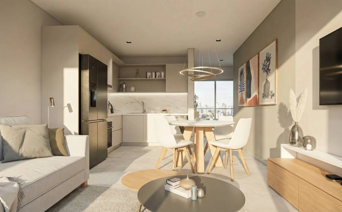 - Sala, comedor y cocina integrados