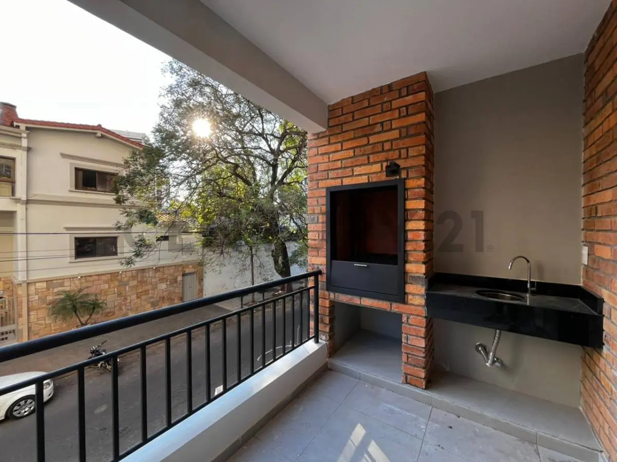 2 dormitorios, 1 en suite | Baño social/fliar | Muebles de cocina | Mesada de granito en cocina y baños | Anafe eléctrico | Campana extractora | Baños con mampara | Placard en dormitorios | Parrilla en el balcón | Aire acondicionado split en todos los ambientes