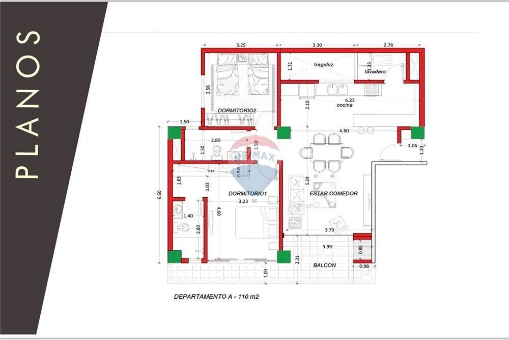 64 Departamentos de 2 dormitorios con 110 M2 propios.