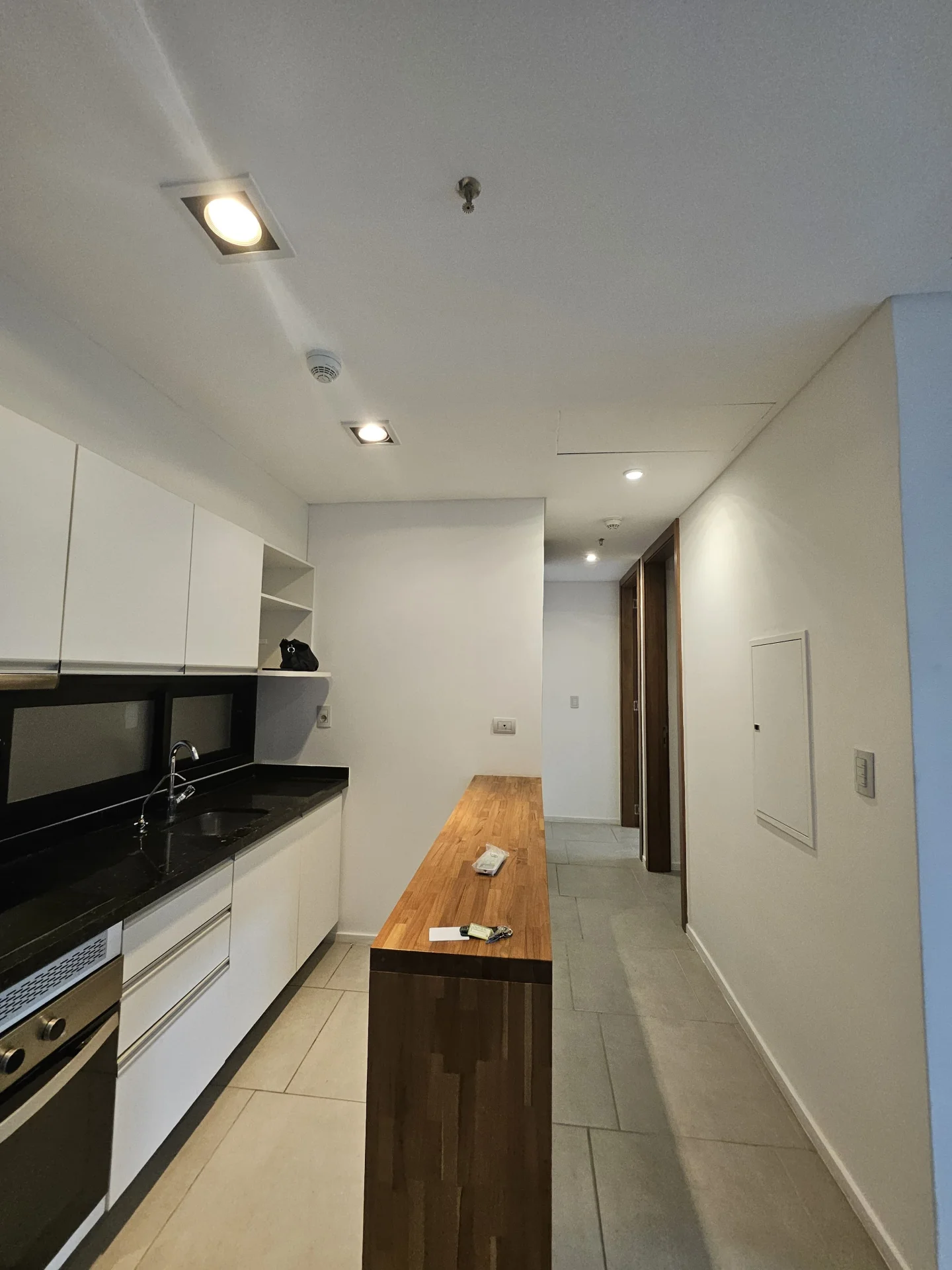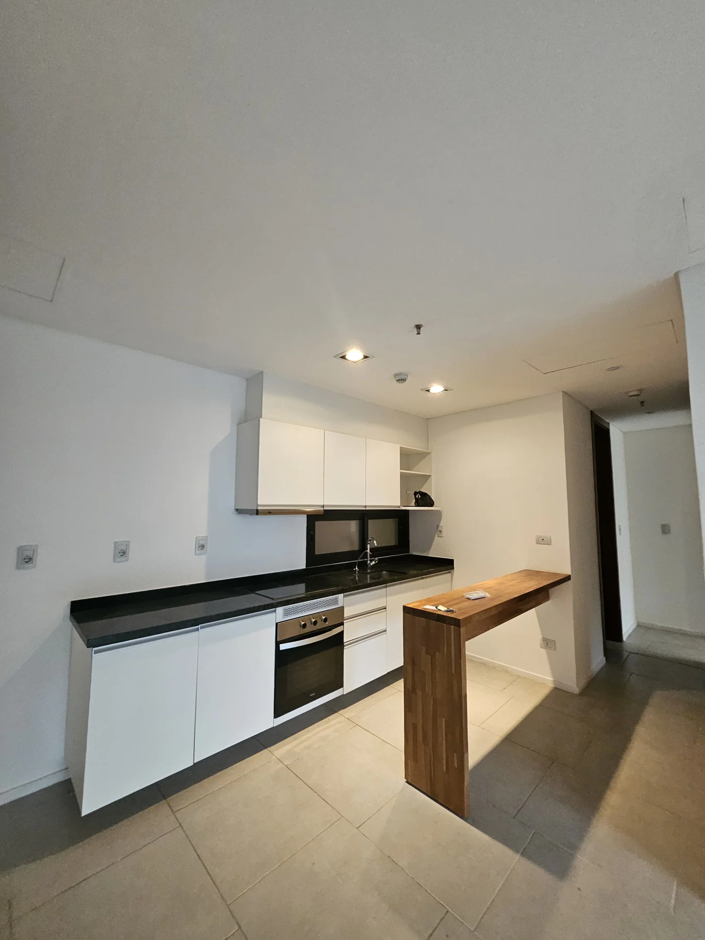 Cocina amoblada integrada, tiene horno, anafe, extractor.