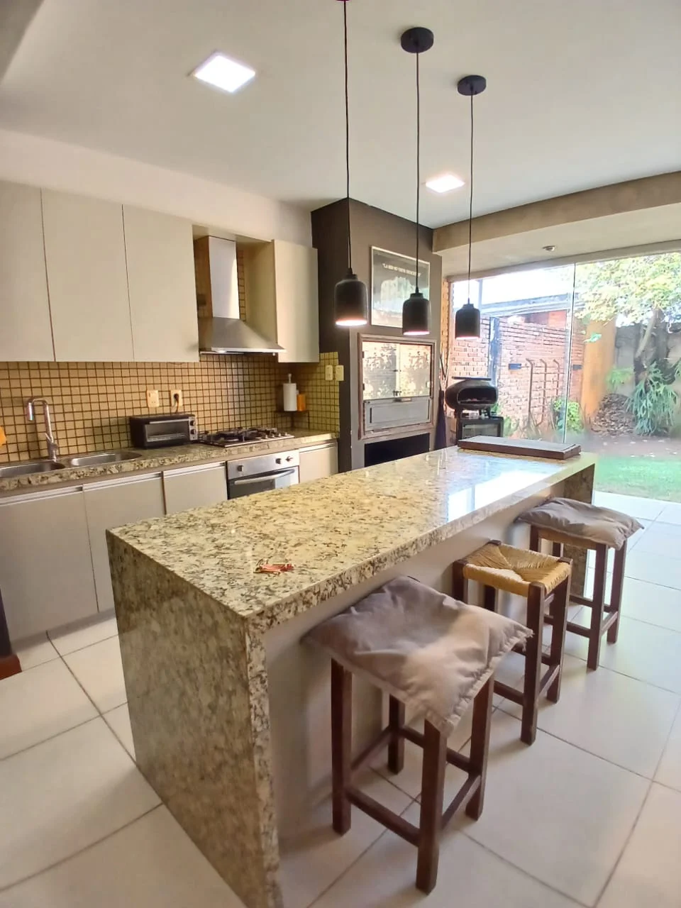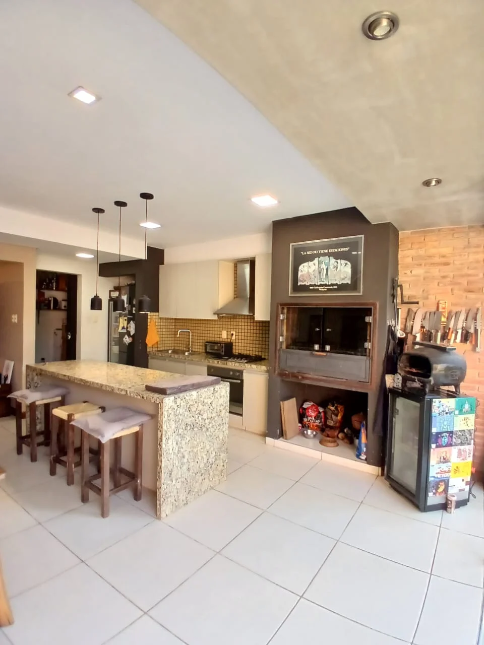 Sala, comedor, cocina integrada con Parrilla