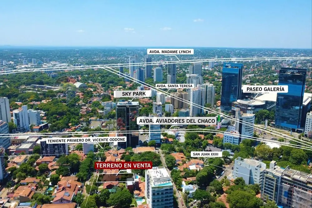 Exclusivo terreno en unos de los Bo. mas prestigiosos de Asunción ubicado a 50 metros del Edificio Skypark. Cercano al Shopping del Sol, Paseo Galería, Eje corporativo.