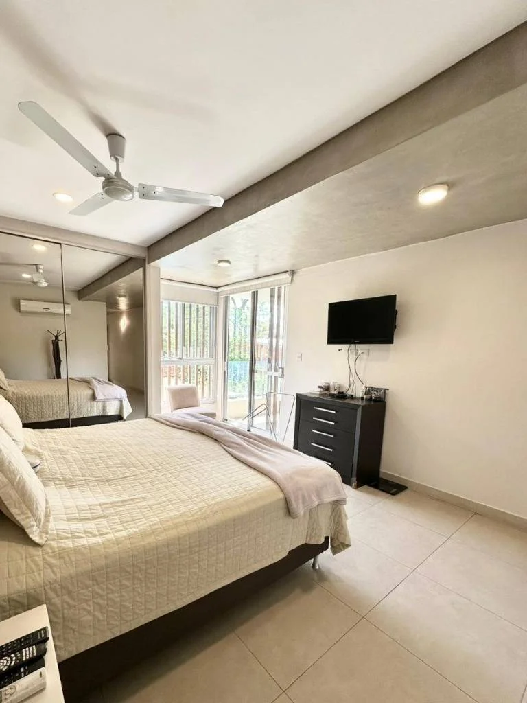 La otra ala de la casa cuenta con un área privada de 2 dormitorios con baño compartido y zona de TV.