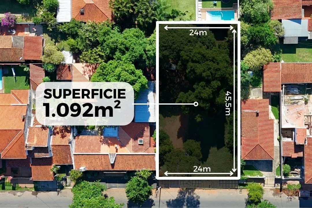 El terreno cuenta con 24 metros de frente por 45,5 metros de fondo, brindando una excelente oportunidad para proyectos habitacionales, edificios residenciales, oficinas o emprendimientos comerciales.