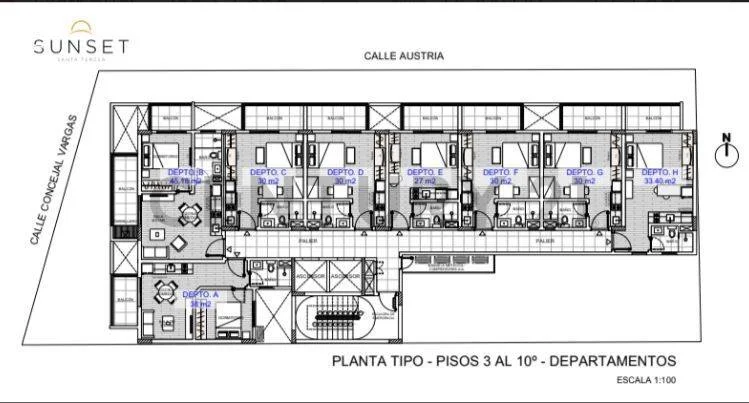 Edificio de 10 pisos , 72 departamentos