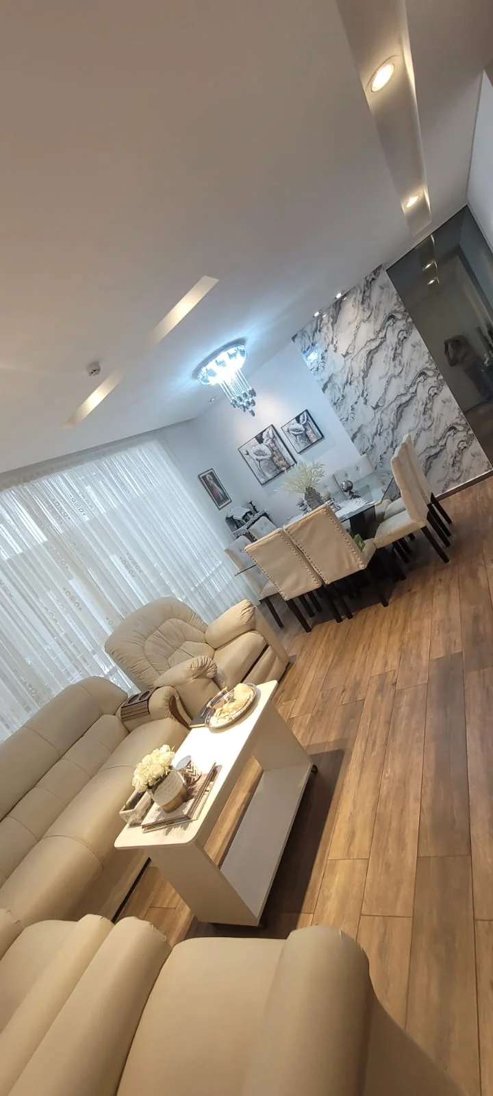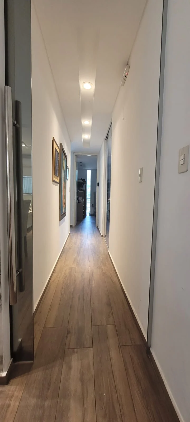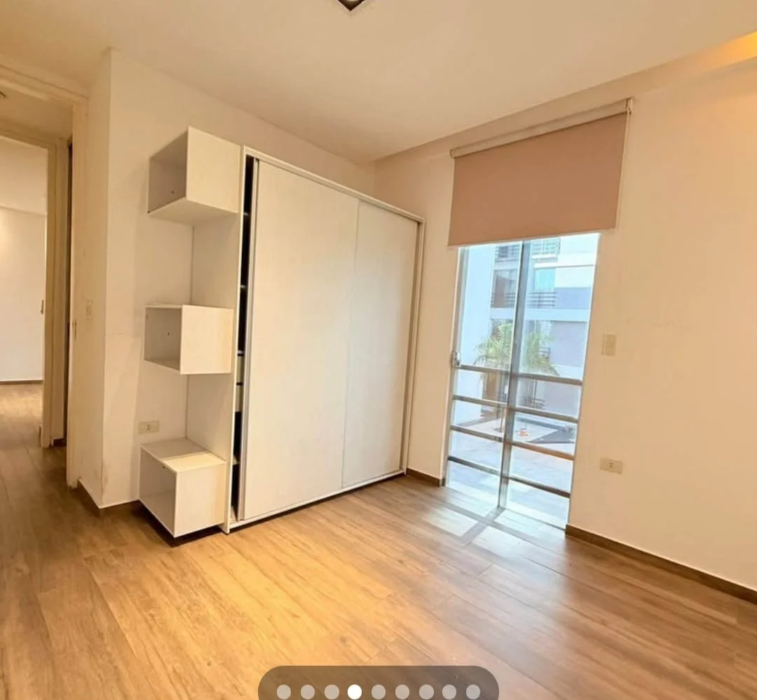 Esta propiedad ofrece una distribución eficiente que separa el área social de los dormitorios, incluyendo una suite principal con balcón privado y área de servicio independiente.
