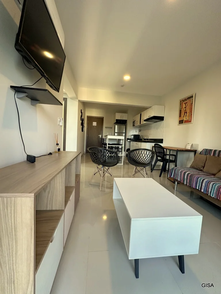 - Sala y comedor: con sofá y 2 sillas, mueble y tv, mueble de escritorio con 1 silla