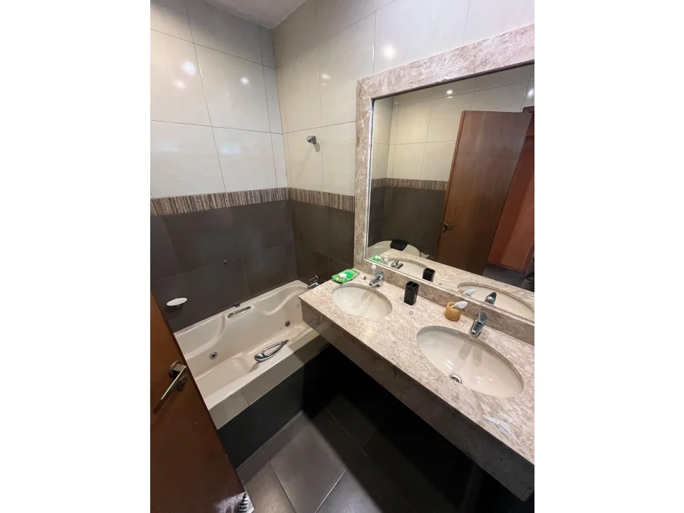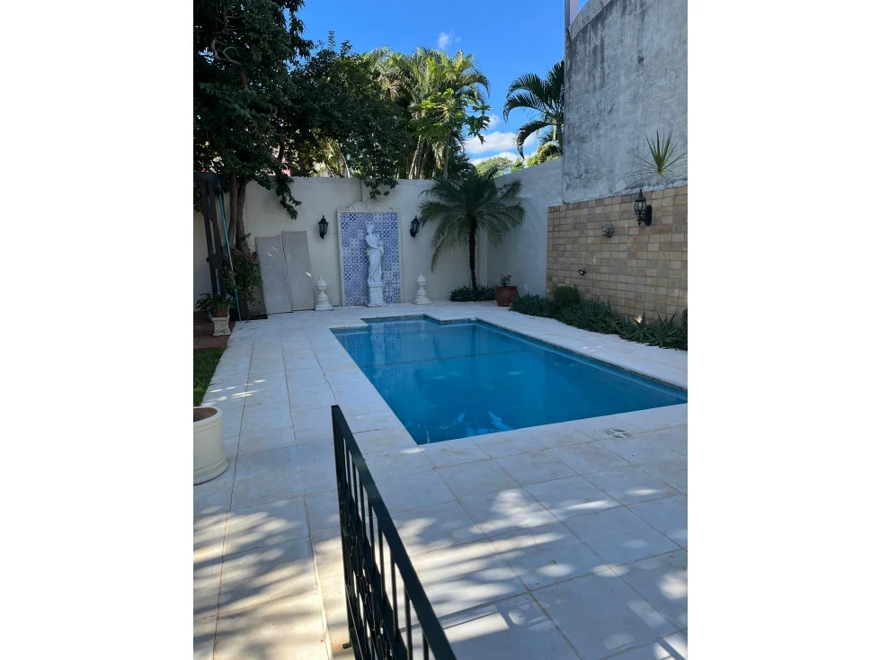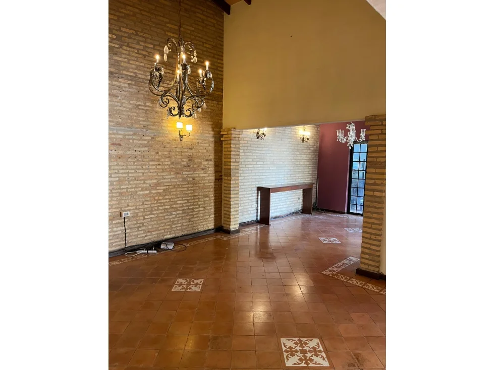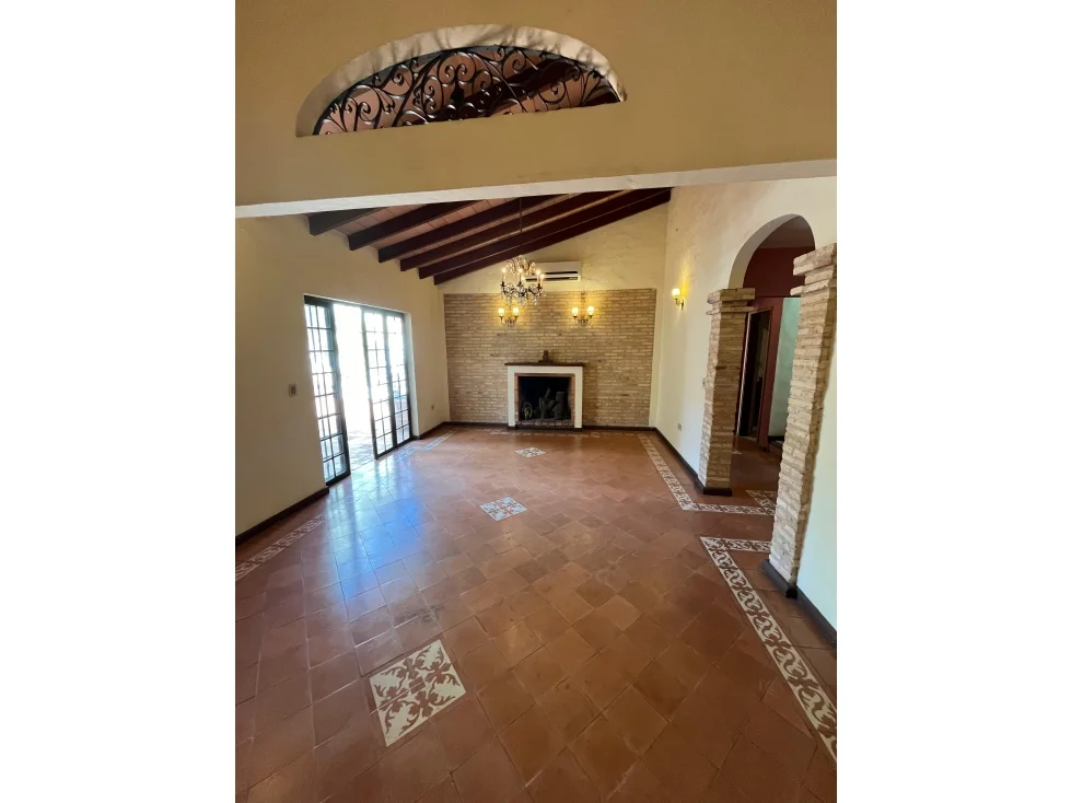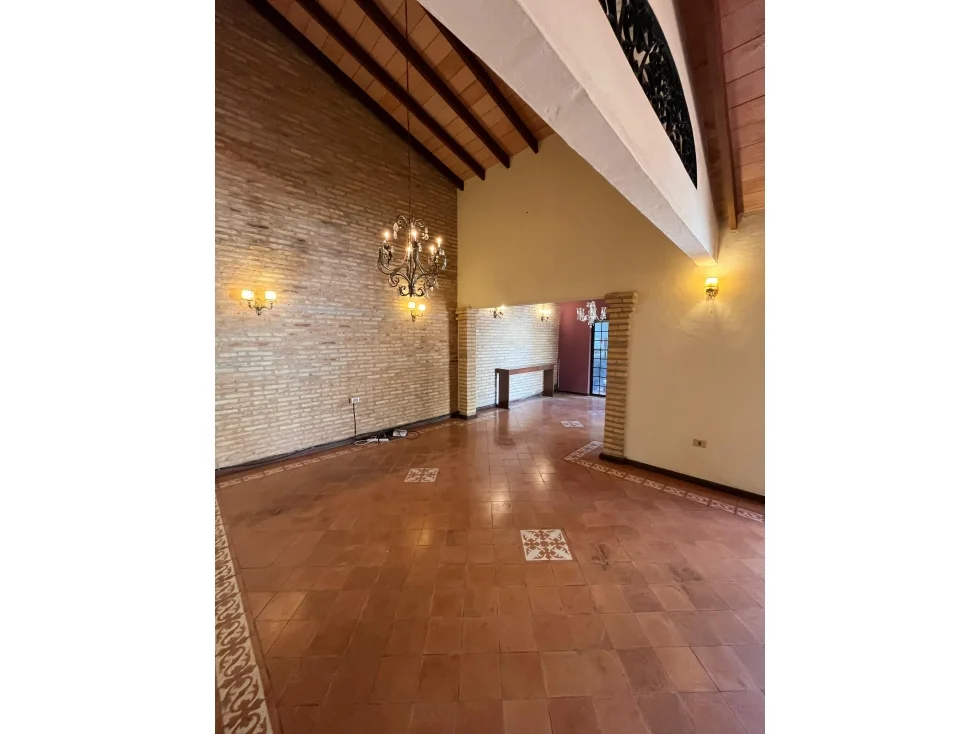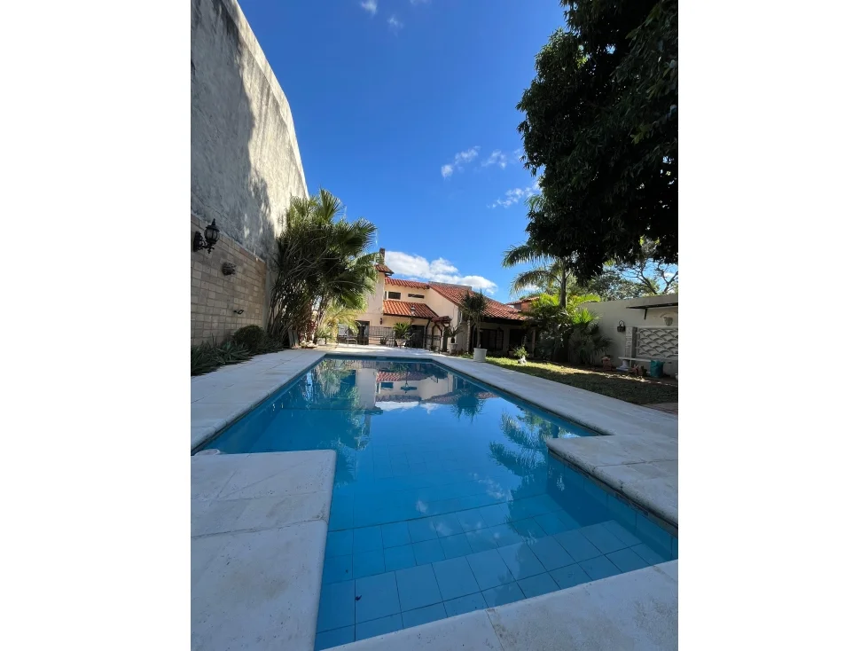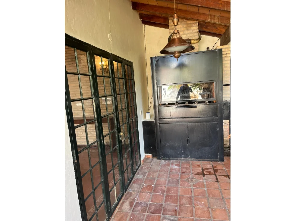 Recibidor, sala/comedor social, estar, habitación master suite, cocina amoblada, área de servicio con entrada independiente, lavadero, patio, quincho con parrilla, piscina, barra con baño