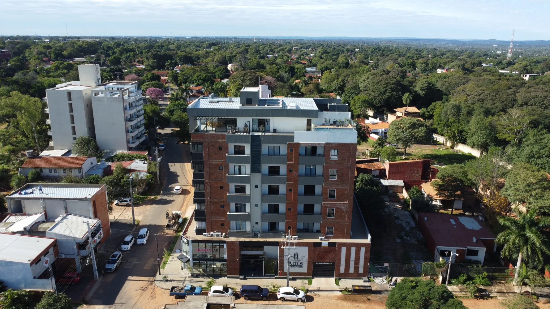 Ubicado en Altos de Brandsen, una torre de 8 pisos con vistas panorámicas.