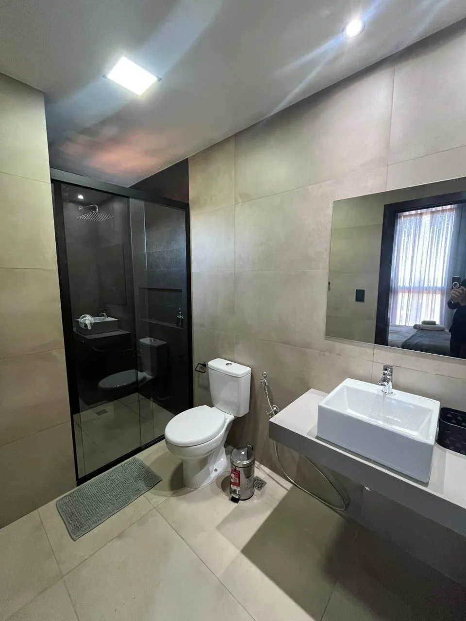 • Baño con mampara de vidrio templado