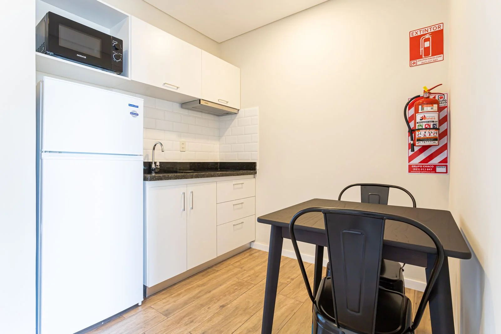 Cuentan con cocina amoblada y equipada con anafe, microondas, heladera y extractor.